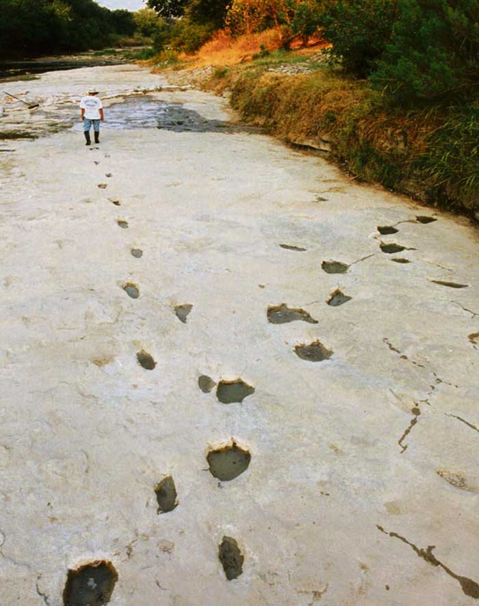 However, in 1968 a palaeontologist named Stan Taylor began excavations of fossilised dinosaur footprints, discovered in the bed of the Paluxy river near Glen Rose, Texas. What he unearthed shocked and dumbfounded the scientific community. Alongside the dinosaur tracks, in exactly the same cretaceous fossilised strata, were well preserved human footprints.