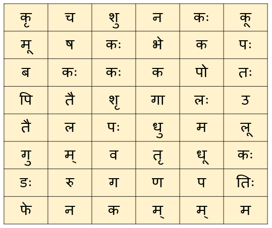 10b-13. I shall describe the position of Rāhu on different days of a month. Rāhu kills the enemy facing it on the full moon day at the south-east and on new moon day at the north-west. Rāhu will lie facing on the days represented by (the letters) ka to ja and, in the south on (the days of) sa to da, in the east on (the days of) dha to ma and in the north on (the days of) ya to ha and one should avoid those associated with Mars in the bright (fortnight). Three lines towards the east and three lines towards the south (should be written) and then one should write from Sūryaiāśi onwards in the main division. (If battle is made) in the rāśī aspected by Rāhu there will be defeat and victory if otherwise.